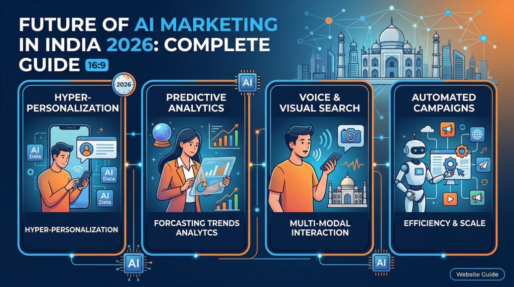 The future of AI marketing in India, 2026, is changing how businesses connect with customers using smarter tools and data. In this guide, you will learn what the future of AI marketing in India 2026 means and how to use it to grow faster. AI-driven marketing in India in 2026 is all about personalization, automation, and data-driven decisions. Businesses that use AI tools to understand customer behavior, create targeted content, and optimize campaigns in real time will grow faster than competitors. To succeed, companies must focus on data quality, customer trust, and adopting AI responsibly.